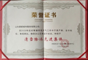 喜报 | 山东康都城市服务有限公司文化中心项目部荣获清雪除冰