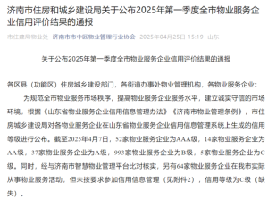 喜报 | 山东康都城市服务有限公司获评2025年第一季度全市