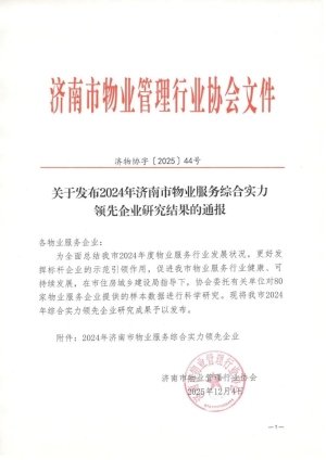 喜报 | 山东康都城市服务有限公司荣获“2024年济南市物业